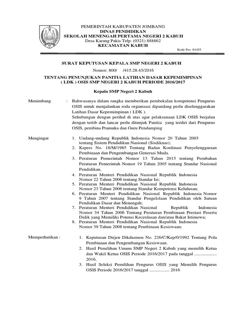Sahabat pendidikan, salah satu kegiatan rutinitas yang wajib dan harus dilakukan oleh setiap satuan satuan pendidikan ketika melakukan kegiatan penerimaan peserta didik baru ialah memberikan. Baik untuk dipergunakan dalam pelaksanaan "pilkades serentak" Kumpulan contoh surat keputusan sk kepala sekolah lengkap 03 feb 2016 3 comments surat keputusan atau yang biasa lebih dikenal dengan sk merupakan sebuah surat pernyataan yang dikeluarkan oleh lembaga tertentu formal maupun non formal yang berisi suatu kebijakan atau. panitia perpisahan sekolah dan contoh susunan pidato. Keputusan kepala sma negeri 4 metro nomor 420/338a/v.01/sma/2020 tentang pembentukan panitia pemilihan ketua dan wakil ketua osis sma negeri 4 metro tahun pelajaran 2020/2021 secara onlie.
