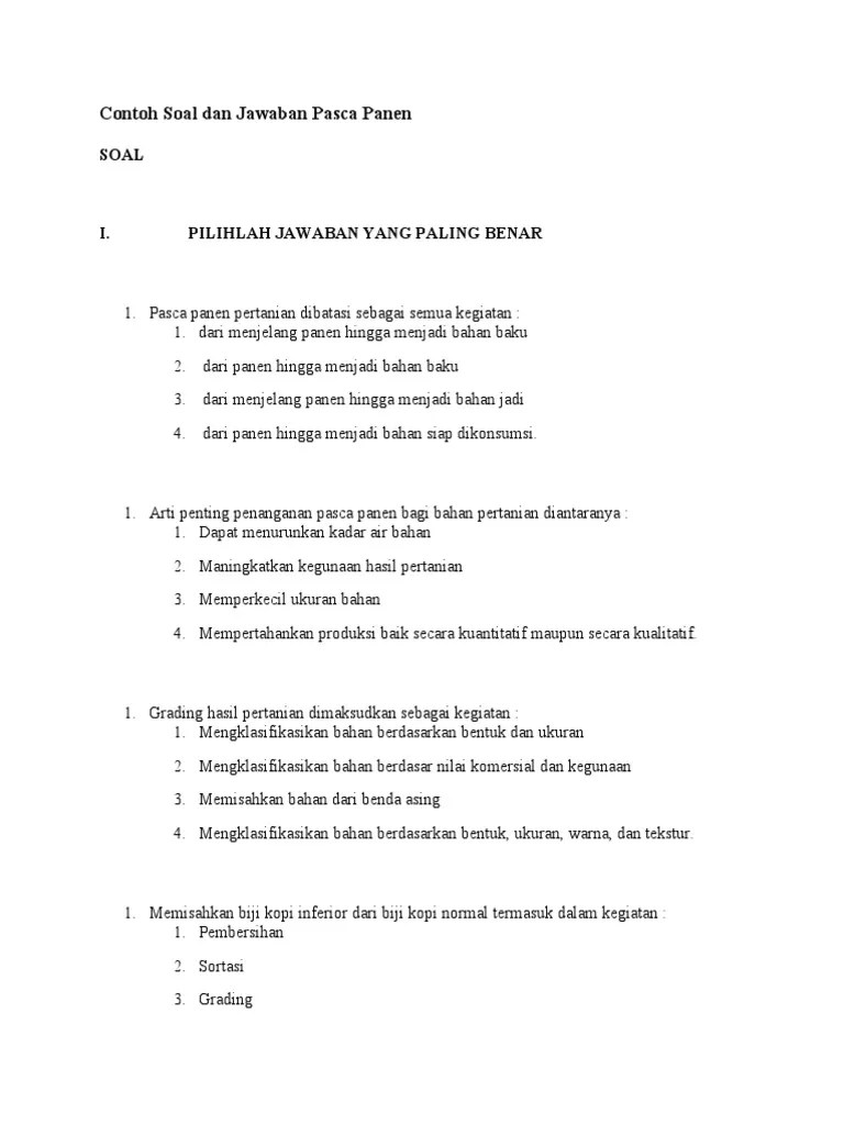 Contoh soal dan jawaban pasca panen. Dorongan atau bimbingan dari pemerintah bagi peningkatan ke rjasama kelompokkelompok tani dapat diperlihatkan dalam bentuk. Kumpulan materi dan contoh soal tes skb pertanian 4 cpns terbaru serta. Begitu juga kami secara sengaja tidak menyajikan dalam format contoh soal skb pertanian pdf, karena kami merasa akan lebih efektif jika anda . Unduh sebagai rtf, pdf, txt atau baca online dari scribd. Contoh soal skb pertanian 2019/2020, kumpulan contoh soal skb cpns 2019/2020 tips dan trik mengikuti ujian skb pertanian 2019/2020. 7) contoh berikut adalah tanaman pertanian yang berkembang di pusat. Konservasi tanah adalah penempatansetiap bidang tanah pada cara penggunaan yang. Soal cpns tkb pertanian 1. Maka mempelajari kumpulan latihan soal pppk penyuluh pertanian file pdf merupakan langkah . Kementerian pertanian yang meliputi budi daya tanaman pangan, budi daya. Cara memperbaiki tanah setelah mengalami erosi yaitu dengan cara??